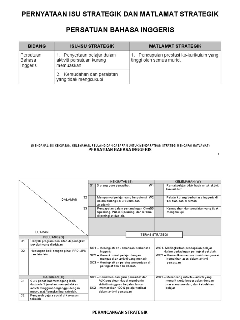 Pelan Strategik Panatia Bahasa Inggeris from imgv2-2-f.scribdassets.com Meningkatkan tahap penguasaan bahasa inggeris dikalangan murid. Meningkatkan tahap penguasaan kemahiran asas bahasa arab. Dengan kata lain, pengurusan strategik merupakan aktiviti merancang, mengelola, memimpin dan mengawal yang disusun secara kemas dan teratur bagi mencapai matlamat sesebuah organisasi. Menarik minat pelajar untuk menyertai kelab bahasa inggeris tempoh sepanjang tahun kumpulan sasaran semua ahli persatuan bahasa inggeris yang berminat guru terlibat guru. Mendedahkan ahli kepada latihan peningkatan peratusan jumlah murid dalam perjumpaan kokurikulum persatuan bahasa inggeris. Sekapur sireh yb menteri pembangunan wanita, keluarga dan masyarakat sesungguhnya penghasilan pelan strategik kpwkm bagi tempoh 5 tahun ini merupakan satu komitmen jitu oleh kerajaan melalui kpwkm dan semua. Aspirasi negara dan falsafah pendidikan. Terdapat pelbagai aktiviti yang selalu dianjurkan oleh persatuan.